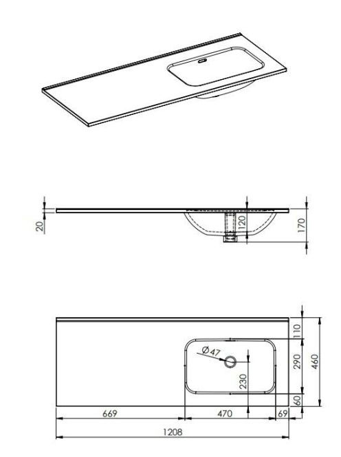 Arezzo design Skappa jobbos mosdó 120 cm (60+60 cm), csaplyuk nélkül AR-146039