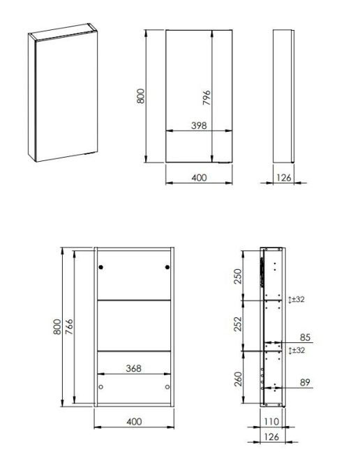 Arezzo design univerzális felsőszekrény 40x80 cm, matt fehér AR-168322