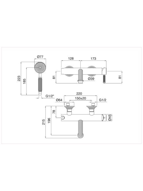 Bugnatese Athena kádcsaptelep zuhanyszettel, króm 8502CR