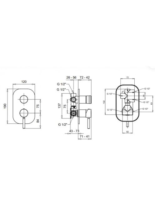 Bugnatese Kobuk falsík alatti zuhanycsaptelep 4 fogyasztóhoz, rozsdamentes acél hatású 2232NS