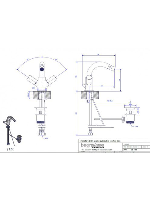 Bugnatese Moon bidé csaptelep leeresztővel, matt fehér 7144BI