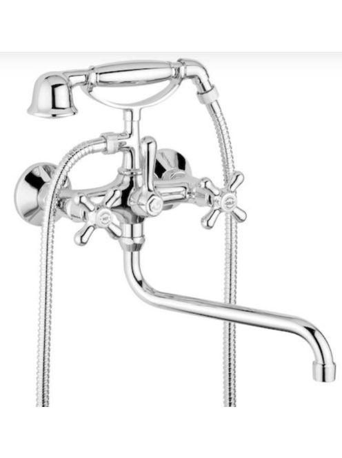 Bugnatese Old'800 kádcsaptelep zuhanyszettel, hosszú kifolyóval, króm/arany 086CRDO