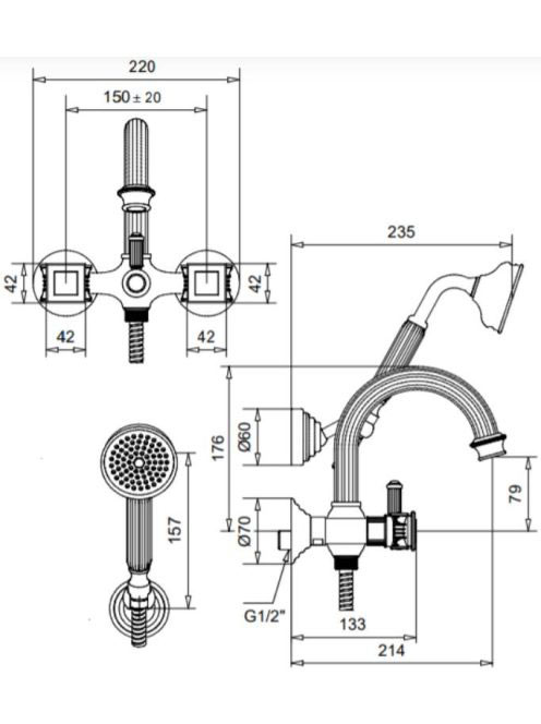 Bugnatese Olympia kádcsaptelep zuhanyszettel, króm 8402CR