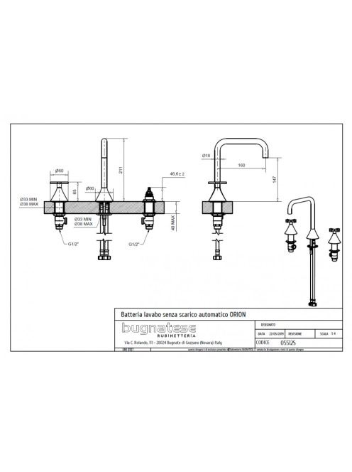 Bugnatese Orion 3-lyukas mosdócsaptelep click-clack leeresztővel, króm 5512SCCR