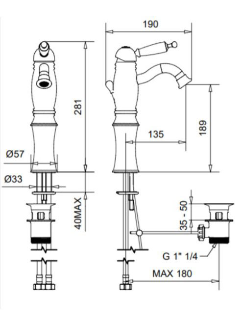 Bugnatese Oxford magasított mosdócsaptelep automata leeresztővel, arany 6327DO