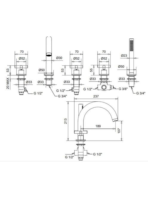 Bugnatese Rodos peremre szerelhető 5-lyukas kádcsaptelep, matt fekete 7380NE