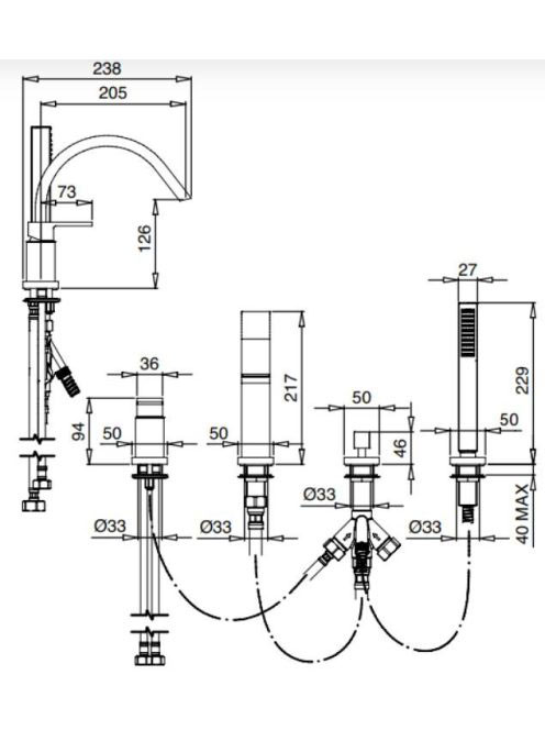 Bugnatese Tetris peremre szerelhető 4 lyukas kádcsaptelep, szálcsiszolt nikkel 9155NS