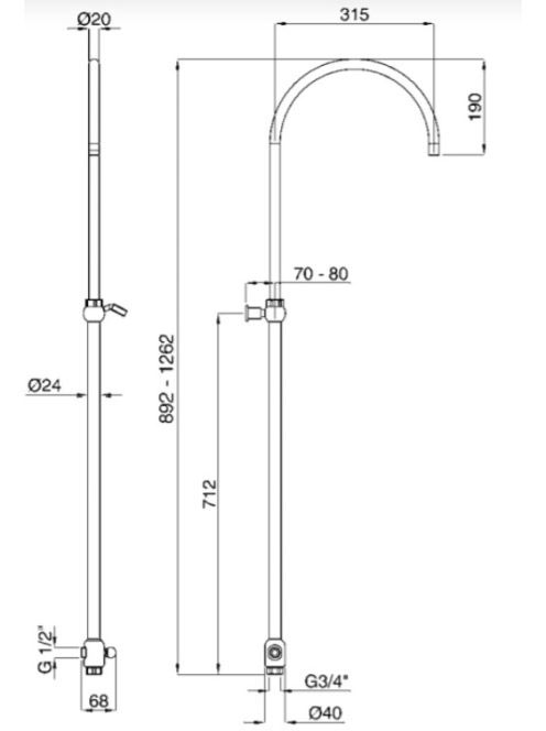 Bugnatese Wellness zuhanyrúd váltóval, bronz 19817BR