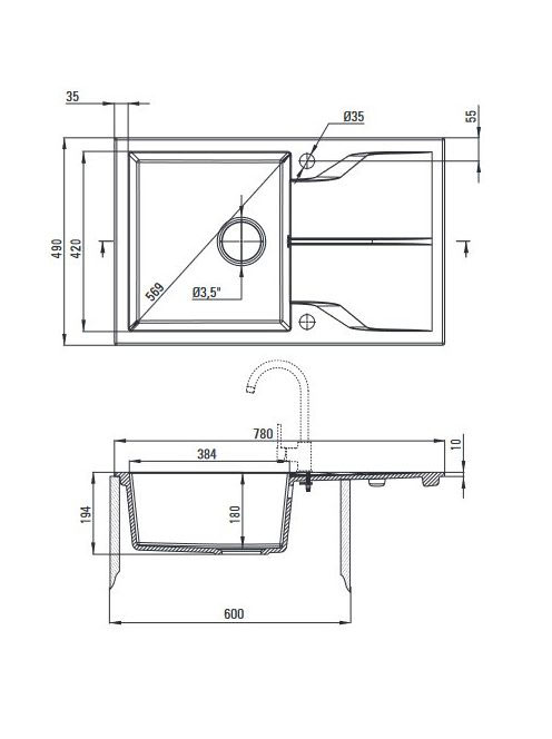 Deante Andante 1 medencés szögletes gránit mosogató 78x49 cm csepegtetővel, grafit metál ZQN G113
