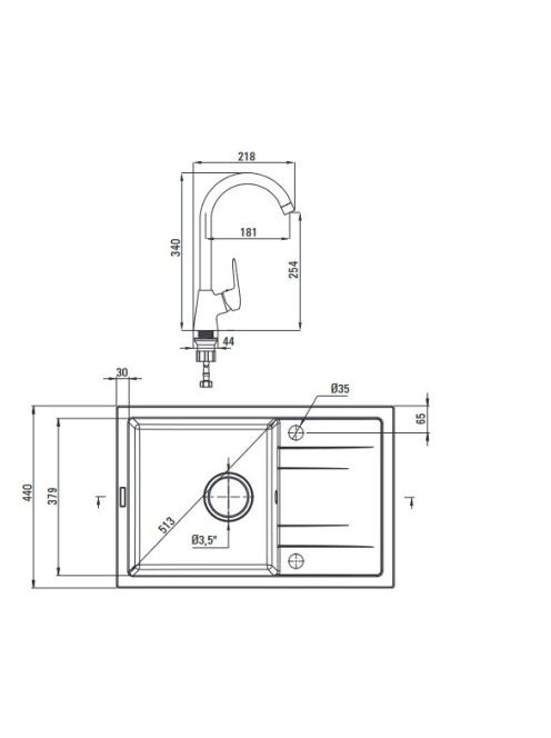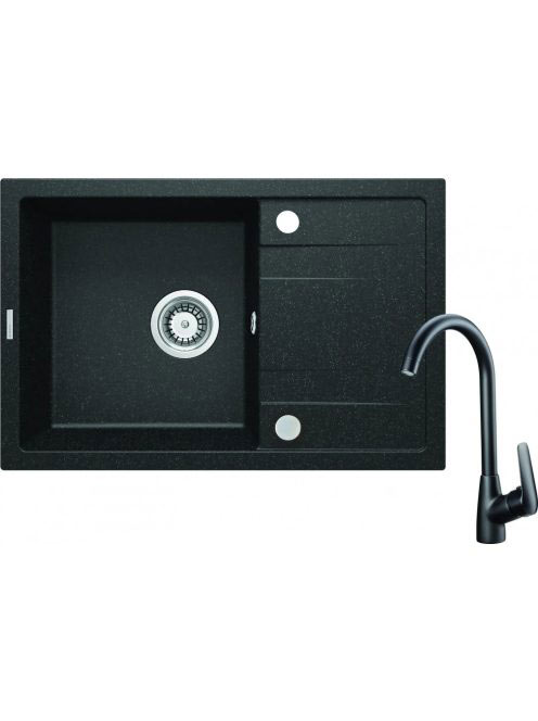 Deante Corio1 medencés gránit mosogató 67x44 cm csepegtetővel és csapteleppel, grafit ZRCB2113