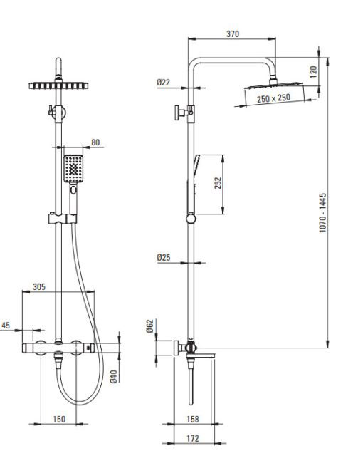 Deante falon kívüli termosztátos zuhanyrendszer behajtható kádkifolyóval, titánium NAC_D1HT