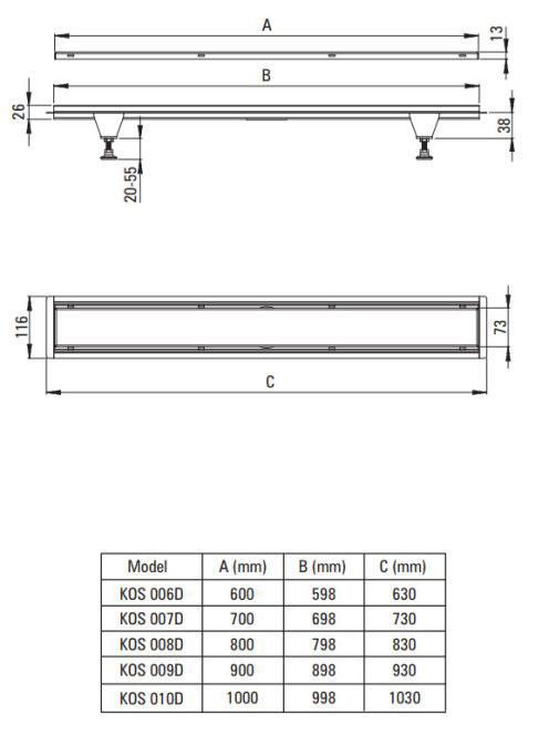Deante forgatható zuhyanfolyóka 70 cm, vízszintes lefolyóval KOS_007D