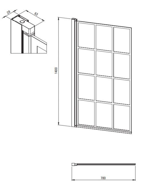 Deante Jasmin 78x140 kádparaván átlátszó üveg fekete kerettel KTJ_N72P