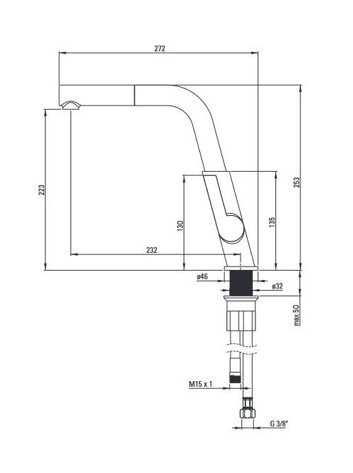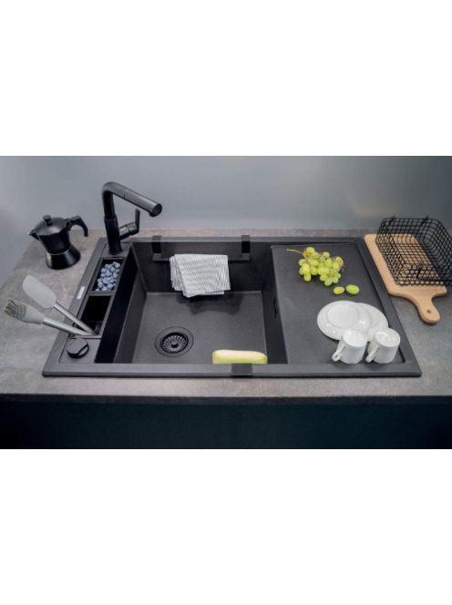 Deante Silia Nero egykaros konyhai csaptelep kihúzható kifolyóval, matt fekete BQS N73M
