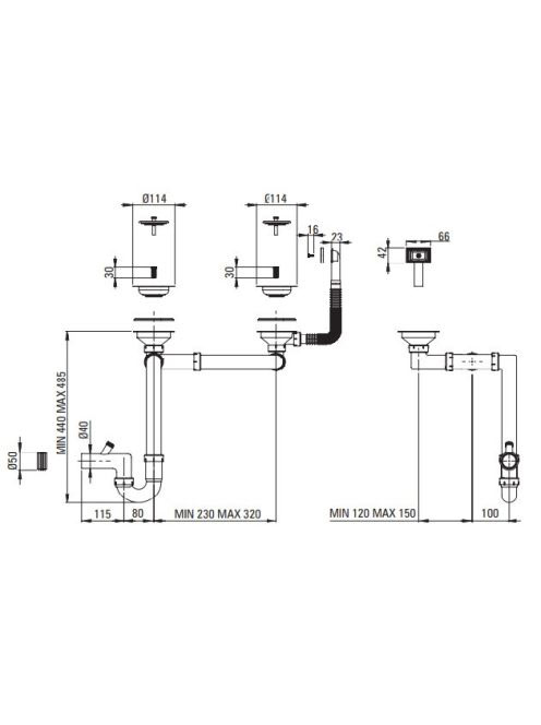Deante szifon 1,5 és 2 medencés acél mosogatókhoz, króm ZXY9956