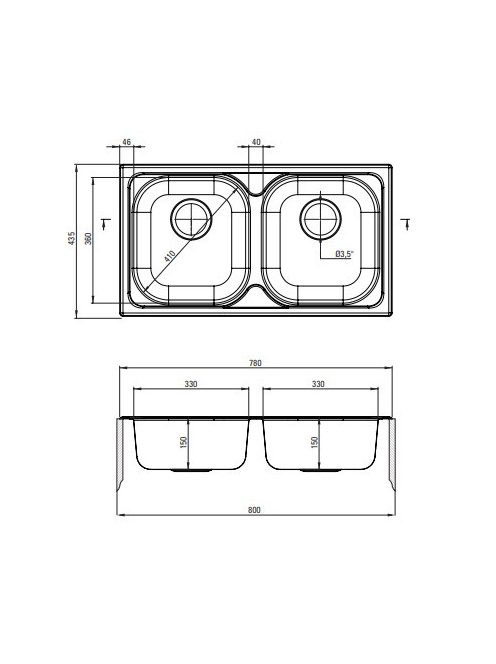 Deante Xylo 2 medencés acél mosogató csepegtető nélkül 78x43,5, szatén ZEX 0203