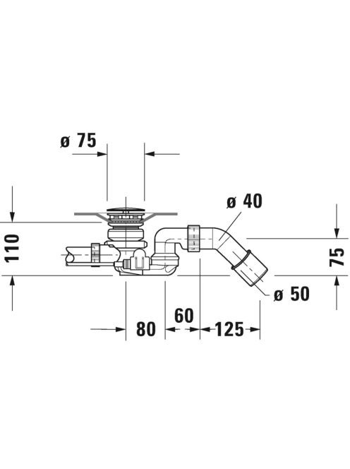 Duravit kád le é túlfolyó 725 mm, szabadon álló kádakhoz 791228000001000