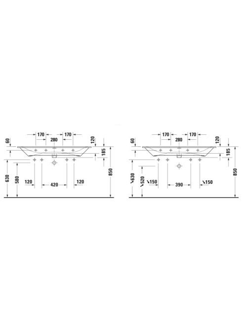 Duravit Viu fehér kerámia mosdó 123x49 cm, 2 csaplyukkal, WonderGliss bevonattal 23441200241