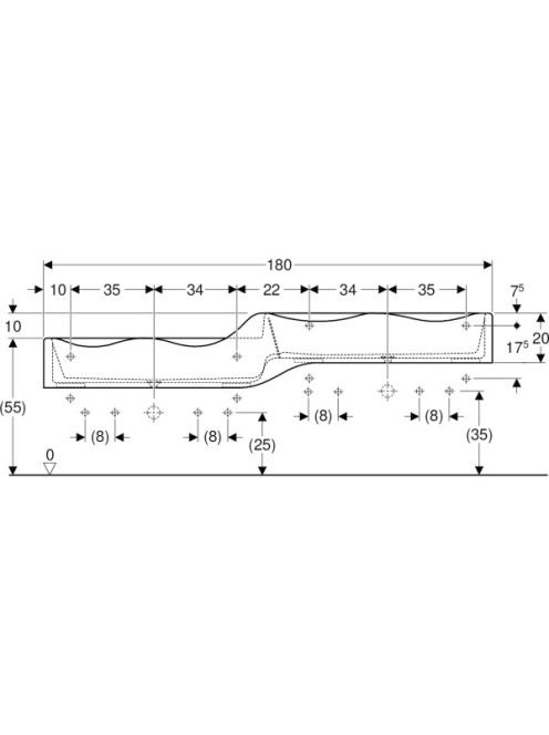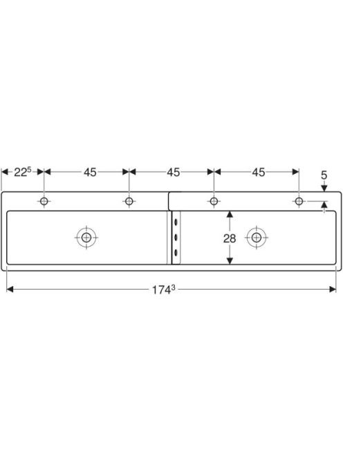 Geberit Bambini gyermekmosdó négy mosdócsaptelephez 180x41,5 cm, túlfolyó nélkül, alacsonyabb mosdó bal oldalon 430000016