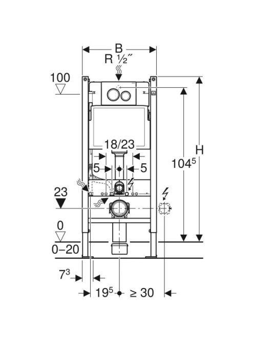 Geberit Duofix fali WC szerelőelem 112 cm, falsík alatti öblítőtartállyal, működtetőlappal 458.120.11.2