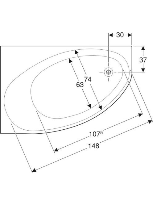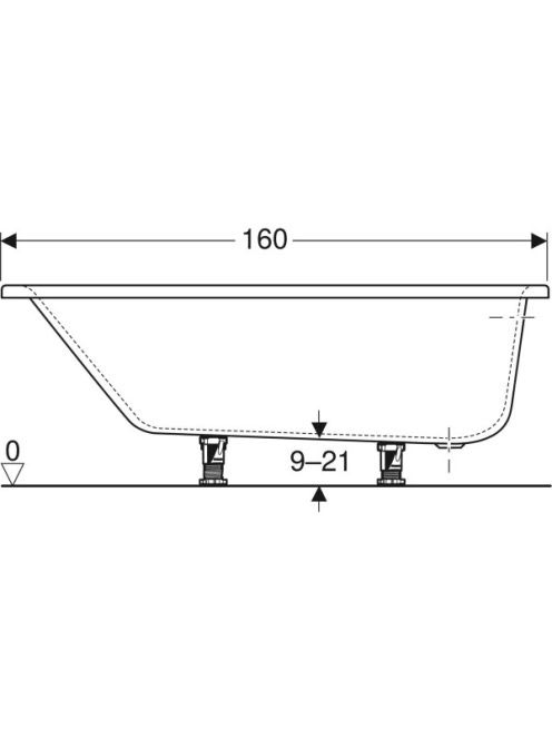 Geberit Selnova 160x100 cm aszimmetrikus fürdőkád lábakkal, jobb oldali lefolyó, fényes fehér 554.274.01.1