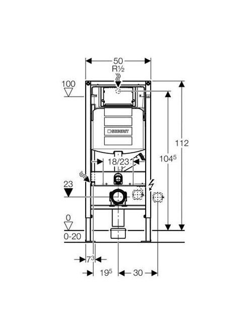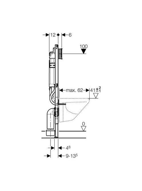 Geberit Sigma fali WC szerelőelem (111.367.00.5), 112 cm, Sigma 12 cm-es falsík alatti öblítőtartállyal, csatlakozócsonkkal szagelszíváshoz 111367005
