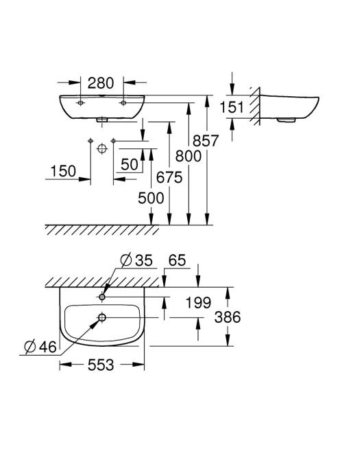 Grohe Bau Ceramic falra szerelhető mosdó túlfolyóval 55,3x38,6 cm, alpin fehér 39440000