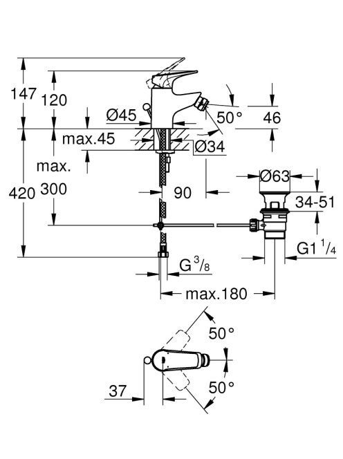 Grohe BauFlow egykaros bidécsaptelep húzórudas leeresztőgarnitúrával 23754000