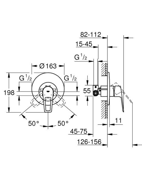 Grohe BauLoop egykaros kádcsaptelep falon belüli egységgel, króm 29080001