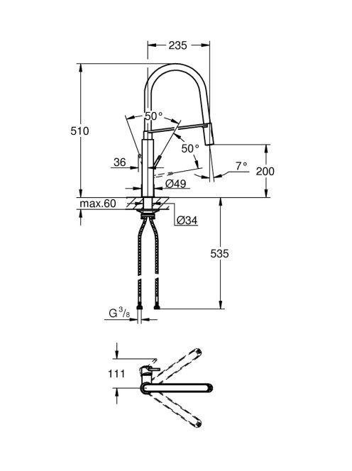 Grohe Concetto egykaros konyhai csaptelep kihúzható fejjel, rozsdamentes acél hatású 31491DC0