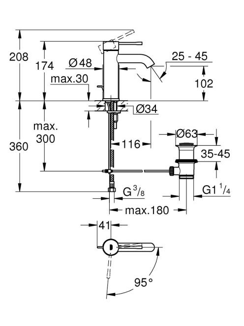 Grohe Essence egykaros hidegindítású csaptelep leeresztővel S-es méret 23591001