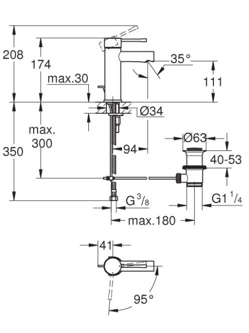 Grohe Essence hidegidítású egykaros csaptelep leeresztőszeleppel S méret 23379001