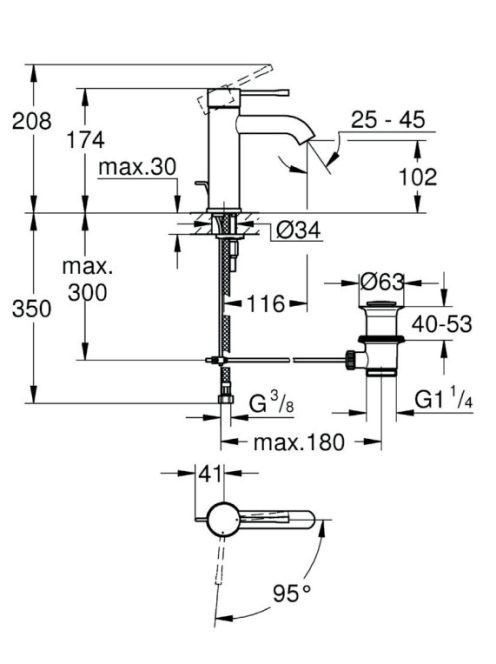 Grohe Essence szálcsiszolt rose arany egykaros mosdócsaptelep leeresztőgarnitúrával, S-méret 23589DL1