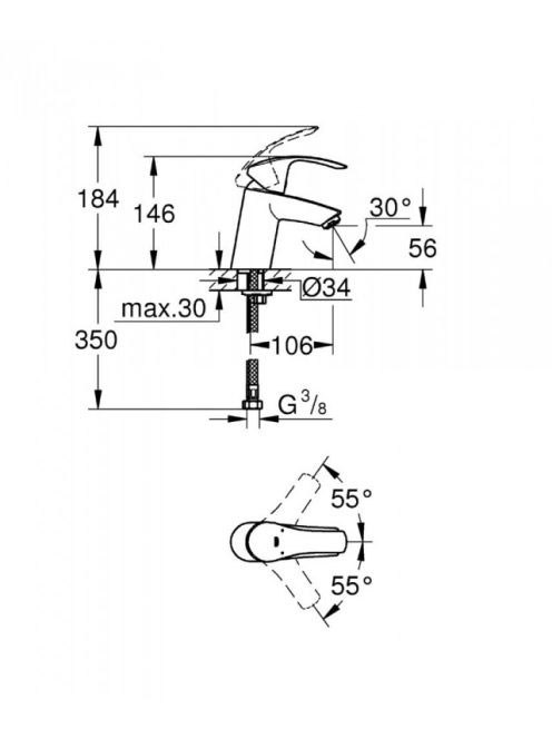Grohe Eurosmart mosdó csaptelep leeresztő nélkül S-Size 32467002
