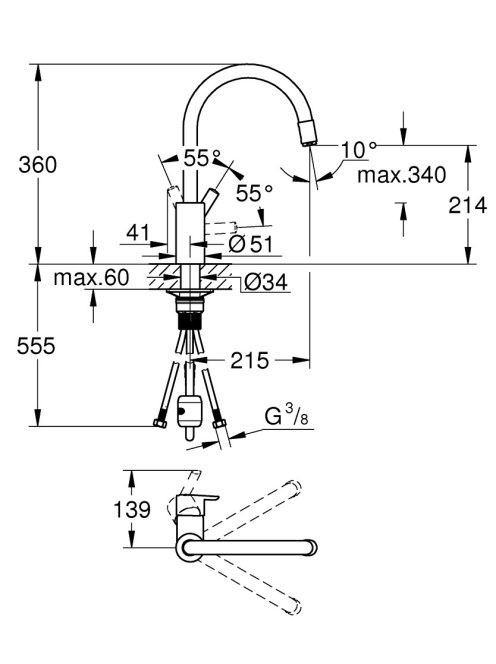 Grohe Feel egykaros konyhai csaptelep kihúzható fejjel, elfordítható kifolyóval, króm 32671002