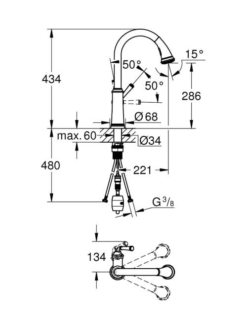 Grohe Gloucester egykaros konyhai csaptelep, kihúzható fejjel és zuhanyváltóval, króm 30422000