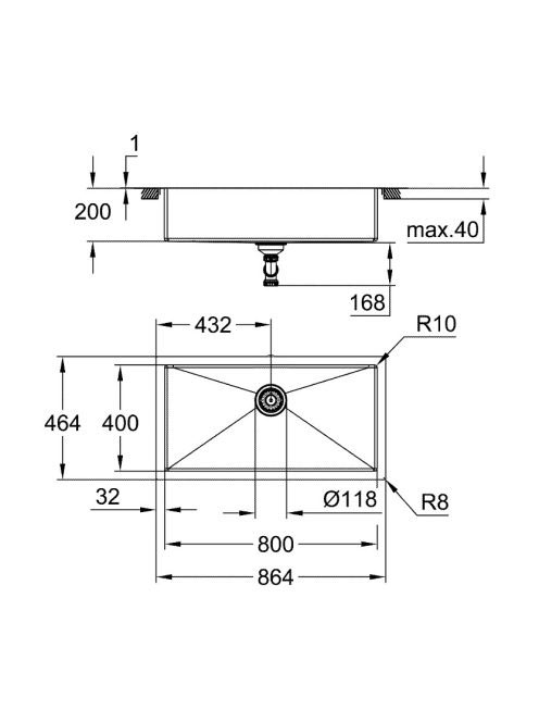 Grohe K700 Rozsdamentes acél mosogatótálca 864x464 mm, szatén 31580SD1