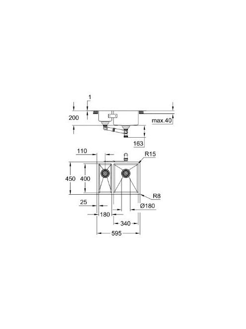 Grohe K700U Rozsdamentes acél mosogatótálca 595x450 mm, jobbos/szatén 31576SD1