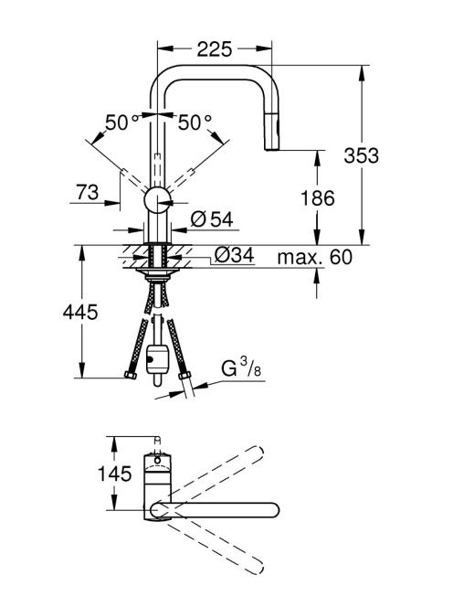 Grohe Minta egykaros konyhai csaptelep kihúzható 2 funkciós fejjel, króm 32322002