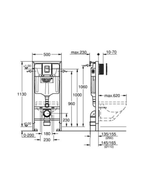 Grohe Solido 5 az 1-ben WC-szett tartállyal, szerelőkerettel, króm nyomólappal, alpin fehér 39817000