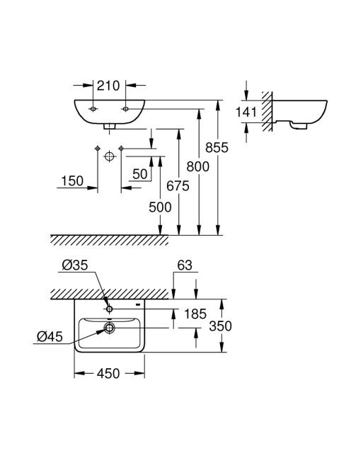 Grohe Start Edge Ceramic kézmosó túlfolyóval és csaplyukkal 45x35 cm, alpin fehér 39953000