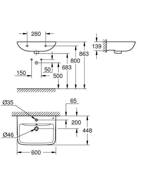 Grohe Start Edge Ceramic mosdó 60x44,8 cm, túlfolyóval és csaplyukkal, alpin fehér 39950000 Kifutó!