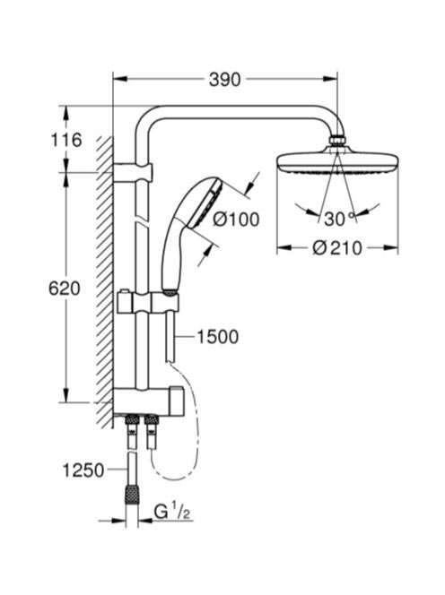 Grohe Tempesta 210 Flex diverteres zuhanyrendszer, 210 mm fejzuhannyal, 26381001