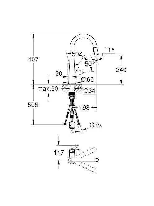 Grohe Veletto egykaros konyhai csaptelep, kihúzható zuhanyfejjel, króm 30419000