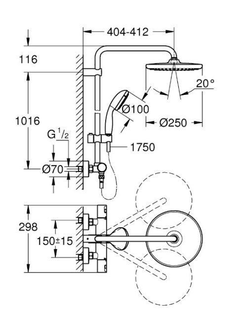 Grohe Vitalio Start 250 termosztátos zuhanyrendszer, matt fekete 266772430