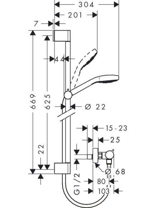 Hansgrohe Croma Select S termosztátos csaptelep Vario 65 cm-es zuhanyrúddal, króm/fehér 27013400