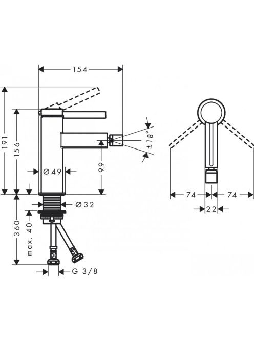 Hansgrohe Finoris egykaros bidécsaptelep push-open lefolyógarnitúrával matt fehér 76200700