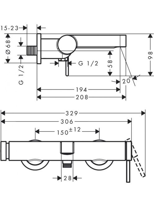 Hansgrohe Finoris egykaros kádcsaptelep falsíkon kívüli szereléshez matt fekete 76420670