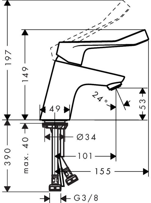 Hansgrohe Focus Care egykaros csaptelep 70 lefolyógarnitúra nélkül, hosszú fogantyús, króm 31914000