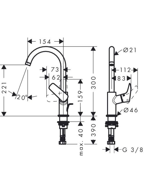 Hansgrohe Logis 210 egykaros mosdó csaptelep lefolyógarnitúrával, króm 71130000
